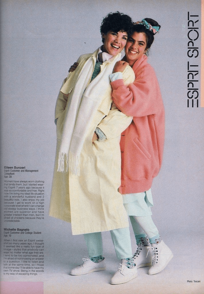 Below are some Esprit ads from 1986. They featured their employees in the ads. The new stuff is too cringe to post, check out the Instagram account to see what I mean. Here is an archival Esprit Instagram account that is amazing.