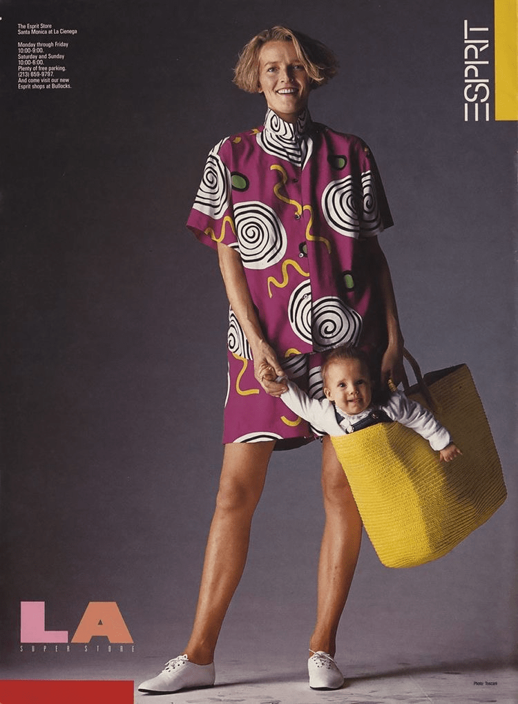 Esprit, the popular 80s brand, is the latest to jump on the 80-90s ‘mall vintage’ revival bandwagon. Global fashion executives and consultants are pouring money into bringing Esprit back by trying to mix the magical proportions of market research, influencer attention, and data capture. But what made Esprit so cool in the 80s was its arty nonchalance (you can read more of my Esprit musings here). Obviously, fashion moved at a slower pace as well back then, which meant, among other things, that every potential market was not analyzed to death by algorithms and data points. And, we’d argue one of the main drivers behind nostalgia for the 80s-90s mall brands (and even Y2K) is the freedom from the constant surveillance of social media, even if the mall was the proto internet. (Read my bff’s writing on the history and social importance of the mall here).